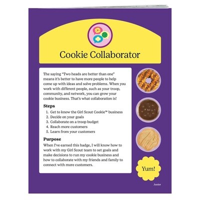 When you've earned this badge, you will know how to work with your Girl Scout team to set goals and make decisions to run your cookie business, and how to collaborate with your friends and family to connect with more customers.